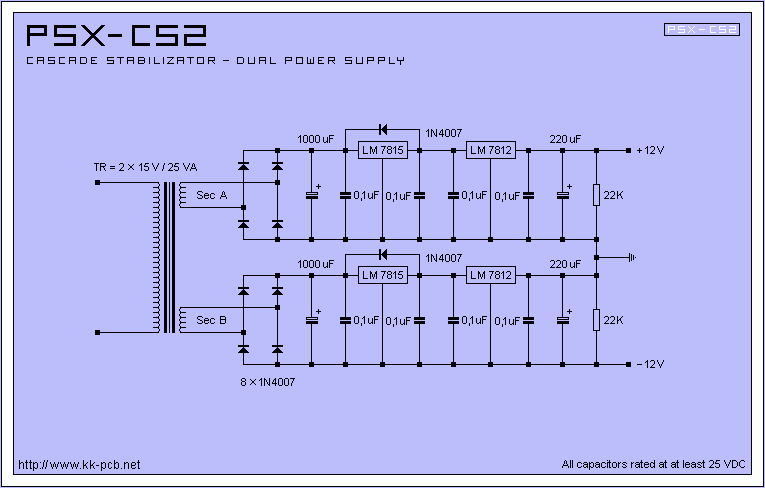 - This power supply can be used for most audio circuits, that are run on dual rail voltages ( +, GND, - )